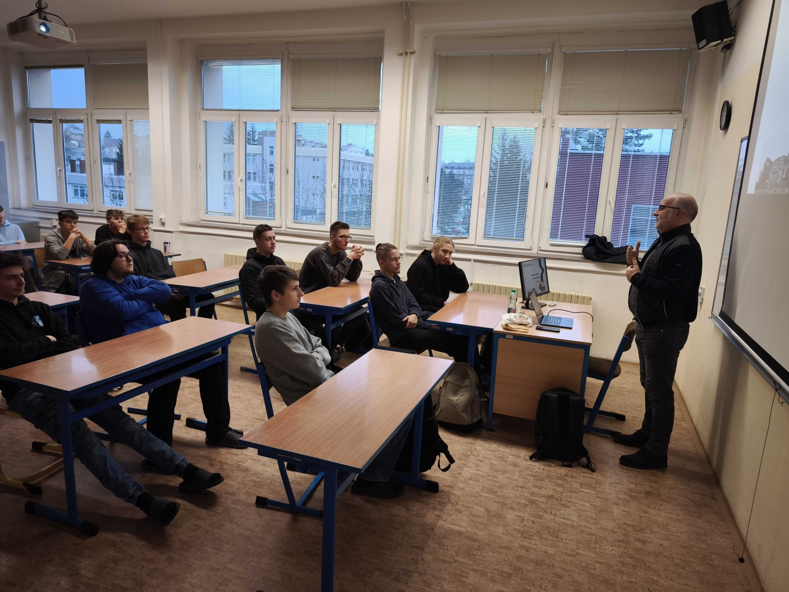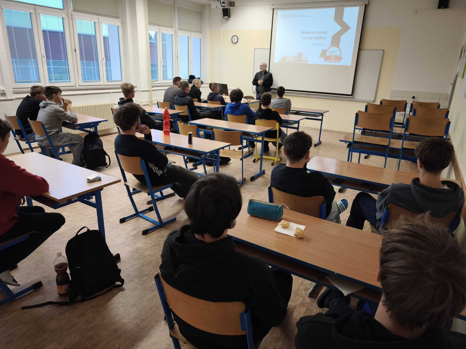 Již poněkolikáté jsme měli milou povinnost přivítat na naší škole pana docenta Tomáše Kozla z Fakulty informatiky a managementu Univerzity Hradec Králové. Pan docent si pro žáky třídy I3A dne 19. 11. 2025 a pro žáky třídy I3B dne 21. 11. 2025 připravil velmi zajímavou prezentaci s praktickými ukázkami na téma „Moderní trendy vývoje aplikací“.