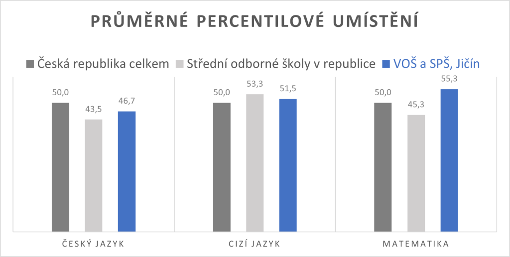 Průměrným percentilovým umístěním, tj. průměrnou hodnotou relativního umístění žáka na základě jeho dosaženého % skóru. Percentilové umístění na úrovni žáka vyjadřuje podíl žáků, kteří dosáhli stejného či horšího výsledku než konkrétní žák.