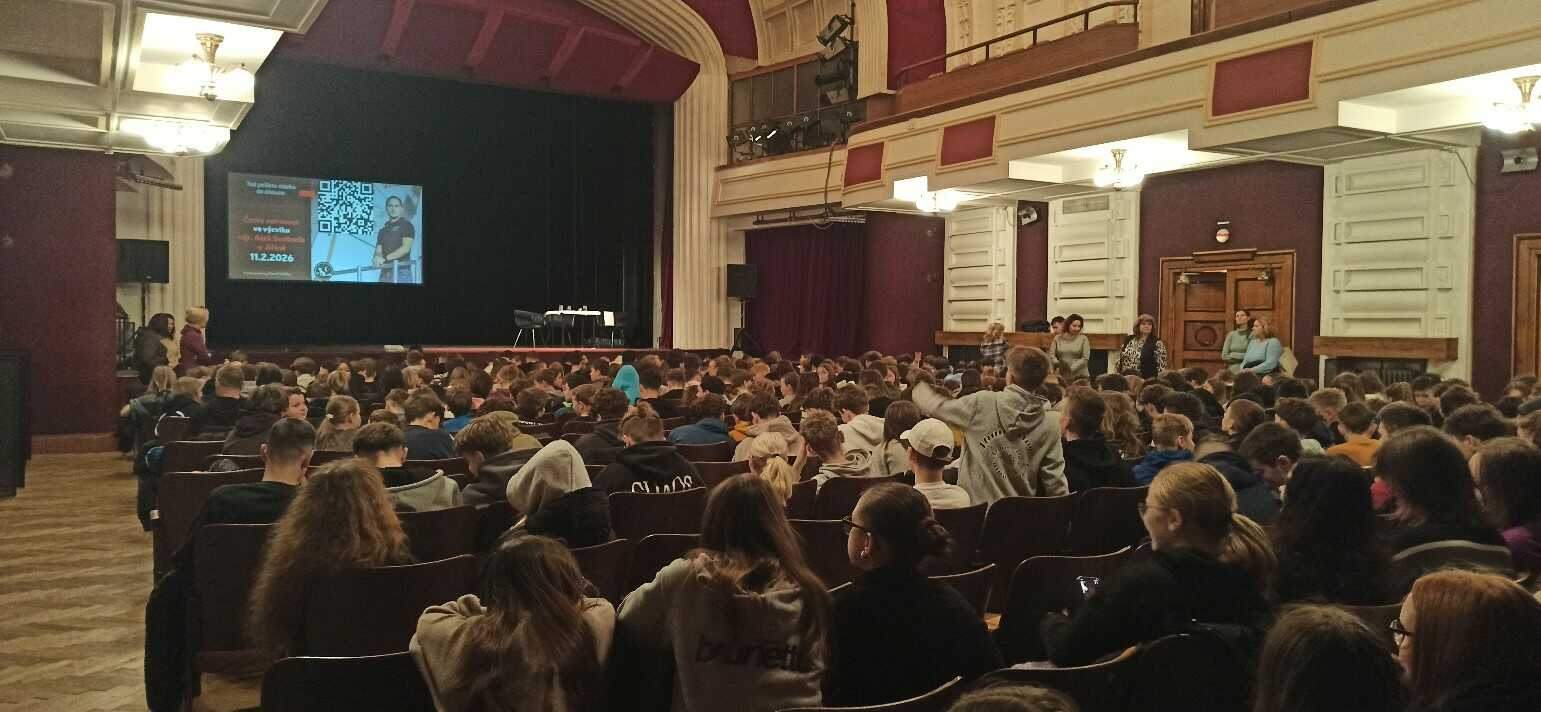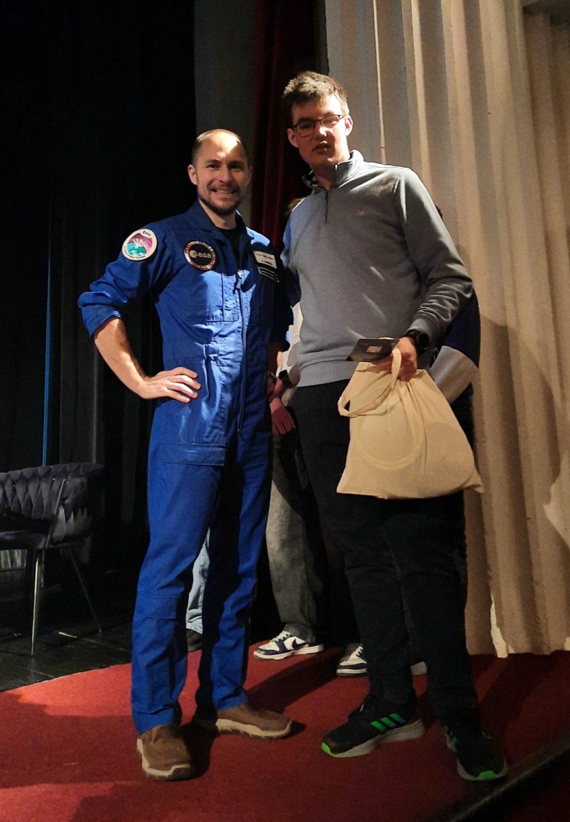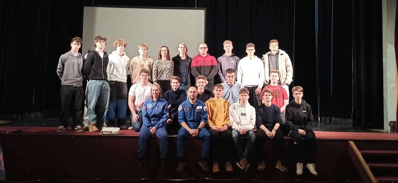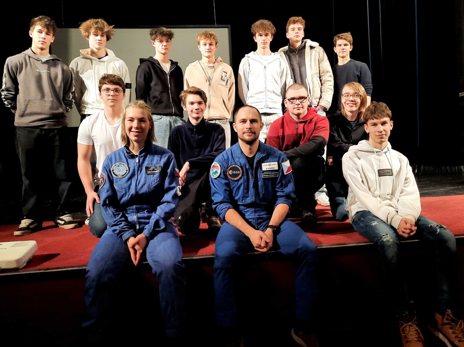 Ve středu 11. února 2026 byla naše škola pozvána na besedu s budoucím astronautem Alešem Svobodou a účastnicí letu Zero-G Stelou Šaršonovou. Setkání se uskutečnilo v jičínském Masarykově divadle a my mohli nahlédnout pod pokličku kosmonautiky a armádního letectví, jež je součástí života českého astronauta ve výcviku.