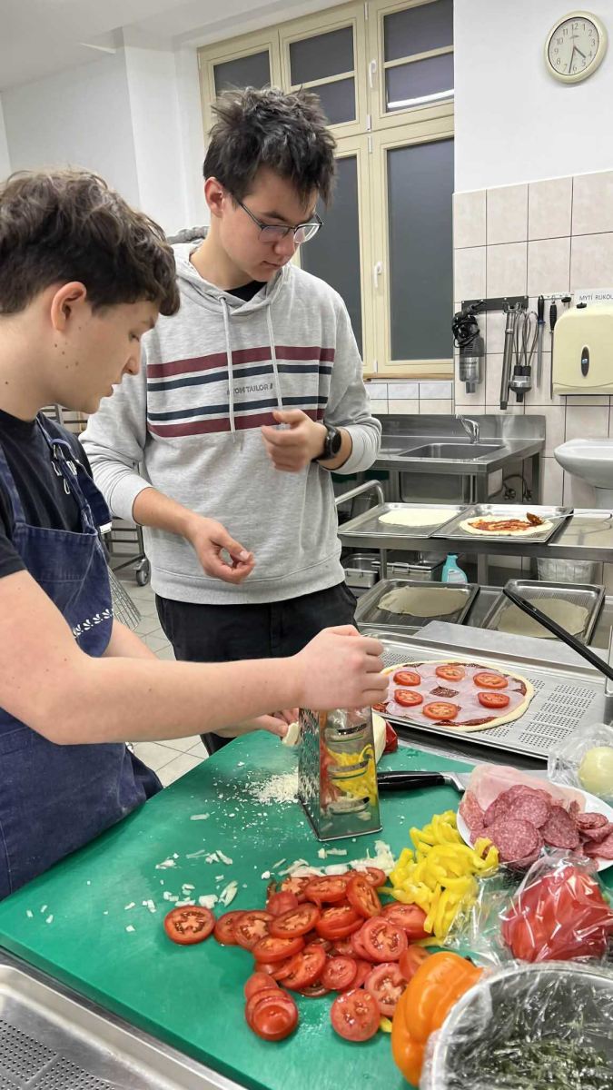Dnes se naše školní kuchyň proměnila v malou italskou pizzerii. Kluci se pustili do přípravy vlastnoručně upečené pizzy a od prvního kroku byla atmosféra plná vůně bylinek a očekávání.