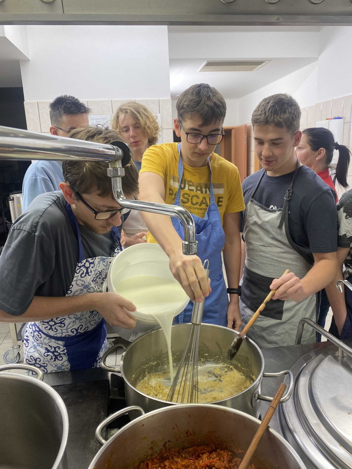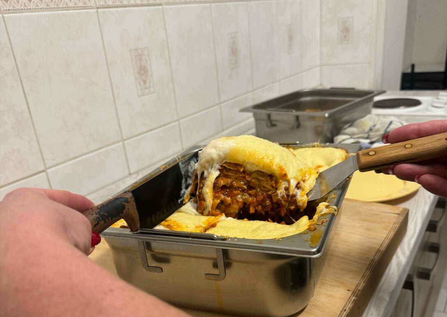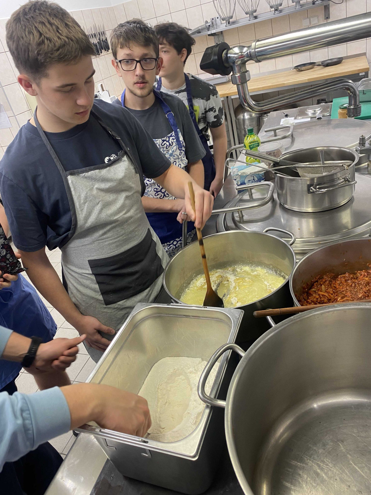 Naše pravidelné úterní setkání v kuchyni se tentokrát neslo v duchu italské gastronomie. Martina si pro kluky připravila pravé italské lasagne, které vznikaly postupně od samého základu. Nechyběla rajčatová omáčka připravená ze zeleniny ani jemný bešamel. Po pečlivé přípravě jednotlivých komponent následovalo vrstvení a následné zapékání.